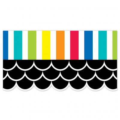 Dress up bulletin boards, rooms, hallways, and common areas with this Black Scallops EZ border. This versatile border is perfect for any decorating theme. These new EZ borders come in smaller strips, which are easier to manage and store. Each package comes with enough borders to complete 2 full bulletin boards.