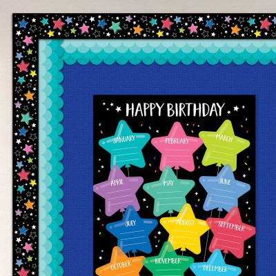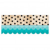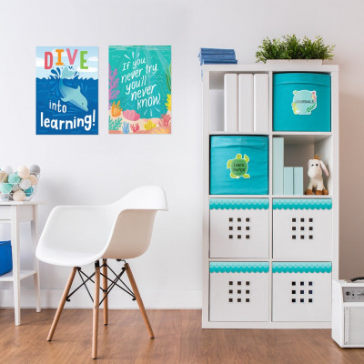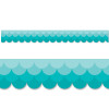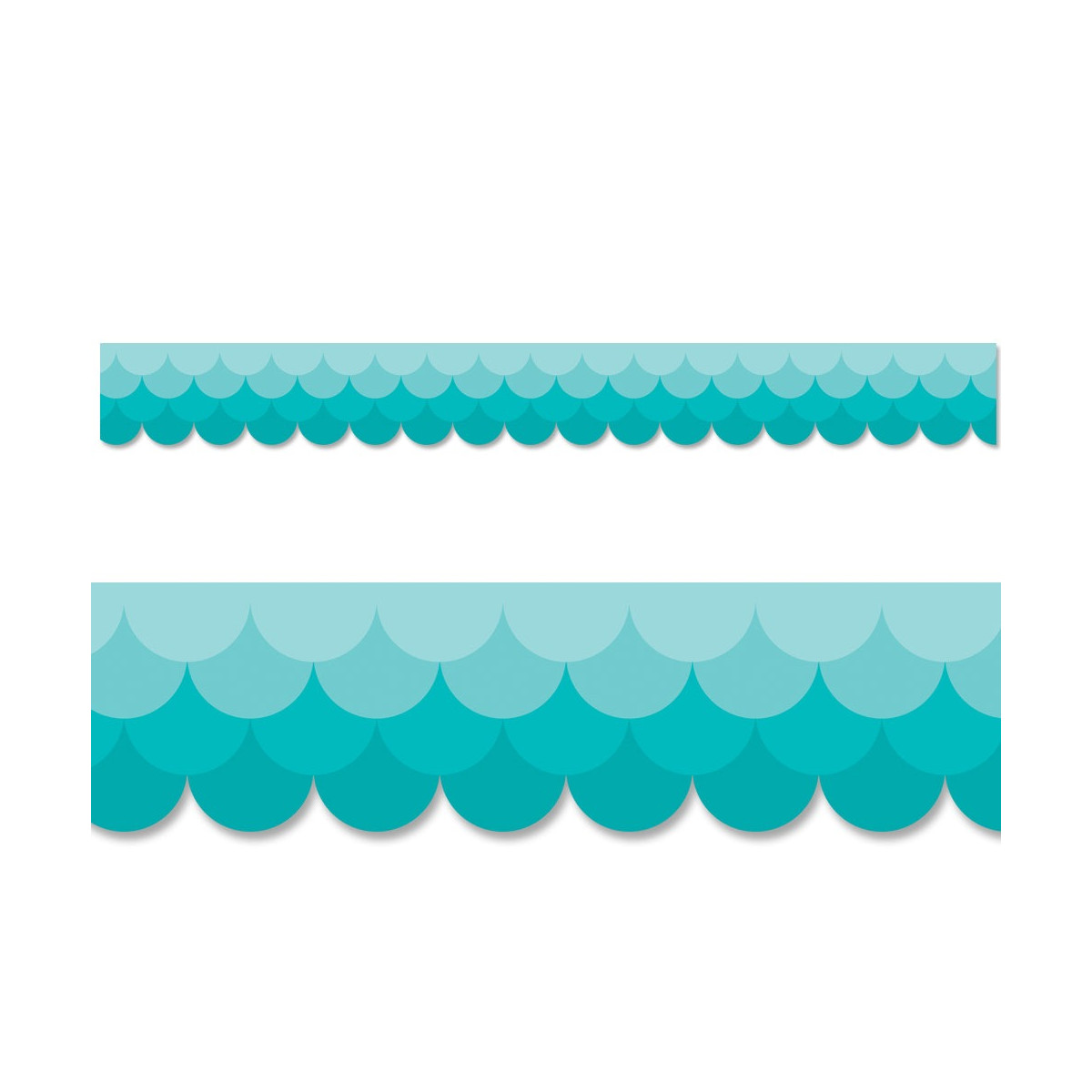 This bright Ombre Turquoise Scallops Border will trim any bulletin board display in style! The bright and colorful ombre turquoise stands out on this versatile bulletin board border that can be used not only in a classroom or at a school but also at an office, a college dorm, or an employee break room. Layer multiple borders to create a special pop in your classroom. These new EZ borders come in smaller strips, which are easier to manage and store. Each package comes with enough borders to complete 2 full bulletin boards.