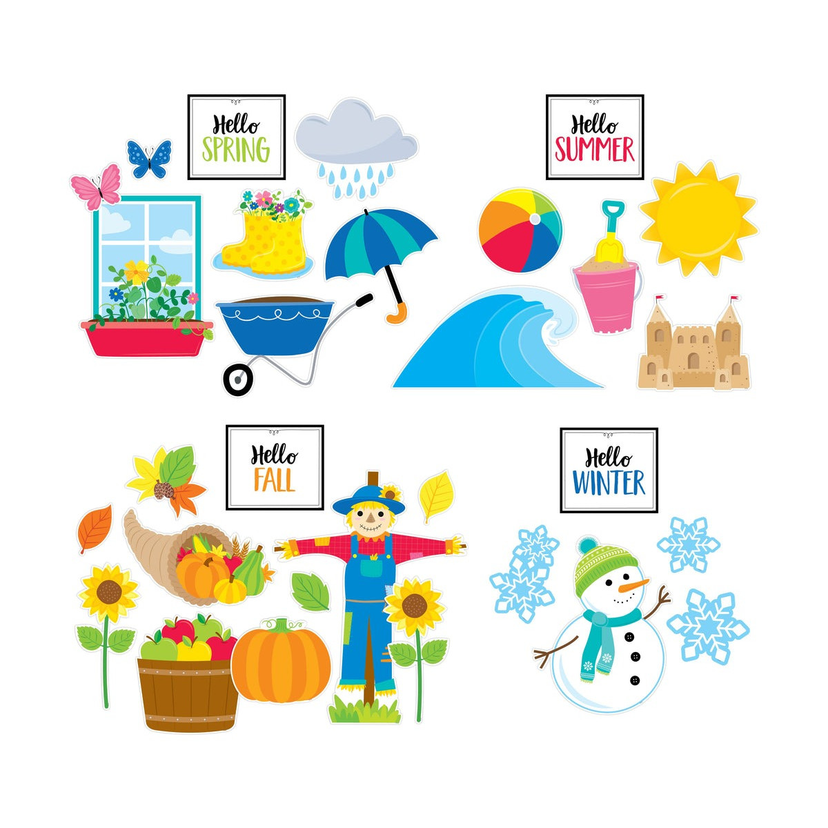 Bring the seasons to life with this Year-Round Seasonal Accents Bulletin Board. This set includes pieces that represent decor...