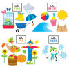 Bring the seasons to life with this Year-Round Seasonal Accents Bulletin Board. This set includes pieces that represent decorations for fall, winter, spring, and summer, as well as holiday decorations for Halloween, Thanksgiving, and Christmas.