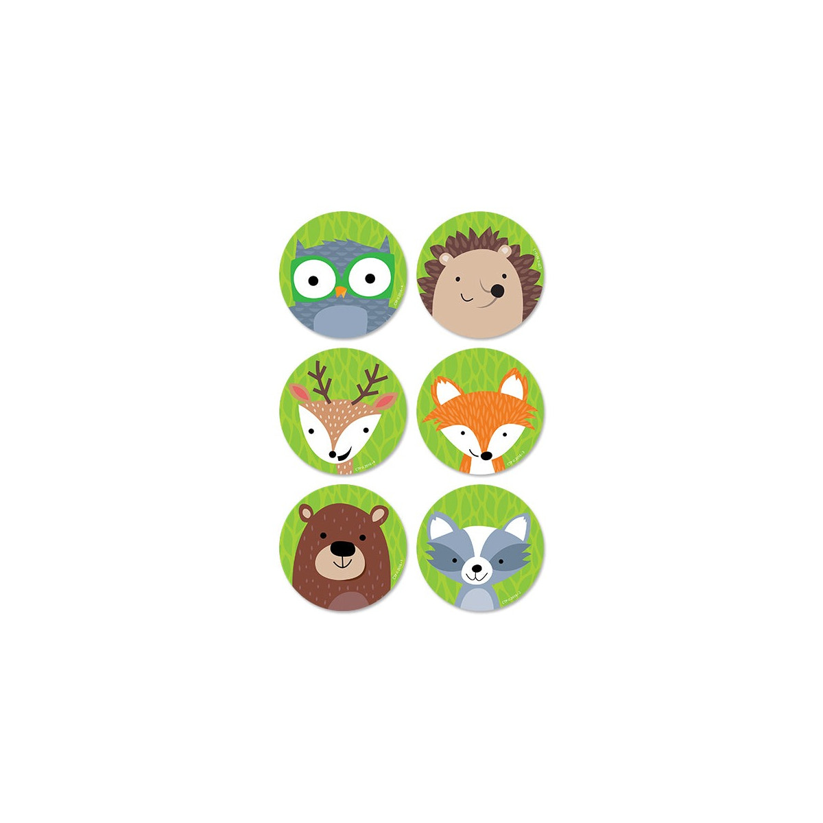 Whimsical Woodland Friends 3" cut-outs will brighten any classroom or child's room. Friendly woodland animals featured are the raccoon, fox, deer, hedgehog, owl on a green leafy background. These Woodland Friends cut-outs are perfect for use in a variety of classroom displays and themes including science, nature, outdoors, animals, and camping. They also make perfect decorations for a child's party.