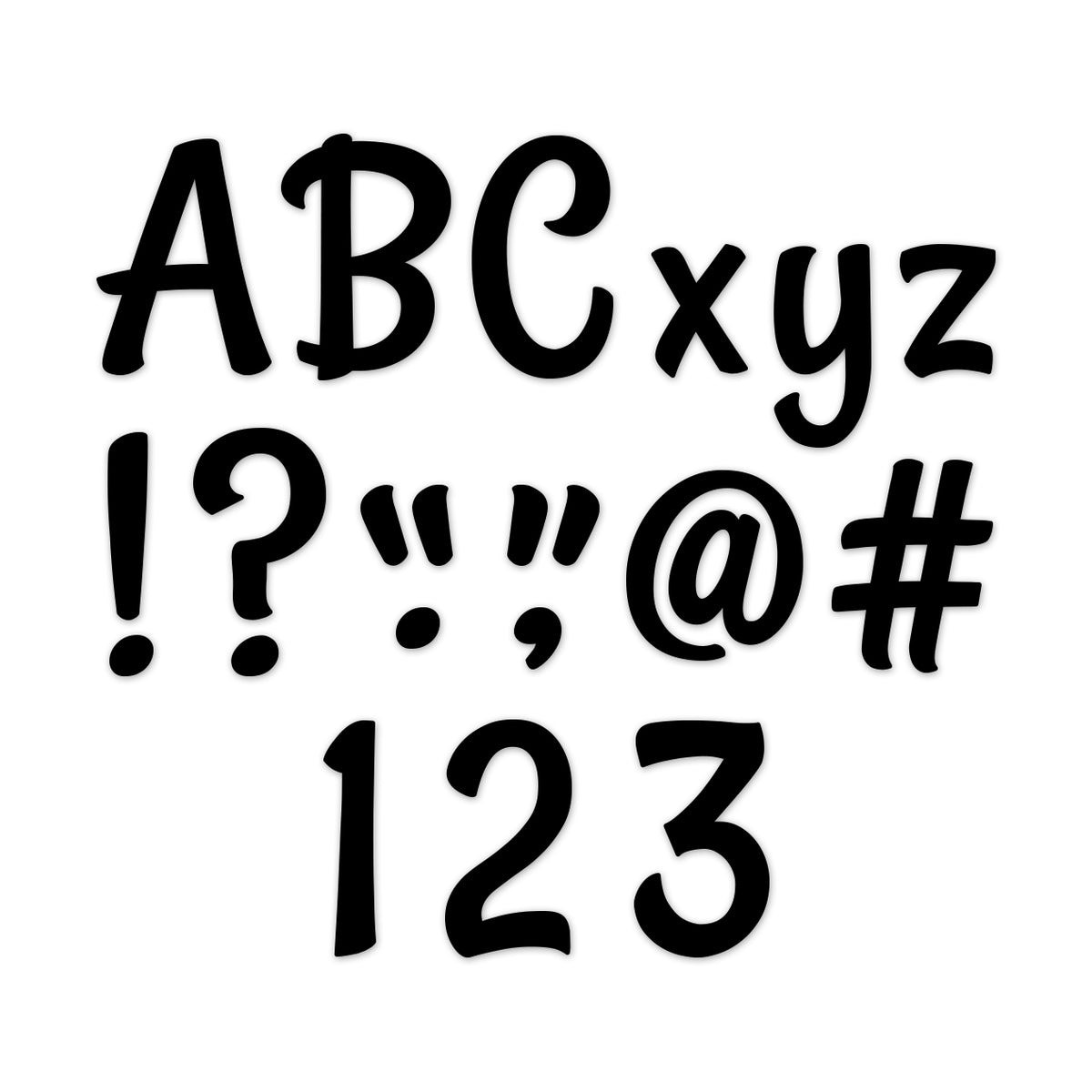 A fun, fresh twist on solid black letters! These Stylish Black 4" Designer Letters feature a playful, hand-lettered feel. This package contains 235 pieces, including upper- and lowercase letters, punctuation marks, and symbols. The casual design of these punch-out letters makes them versatile for use on any bulletin board or display in a school, office, college dorm, senior living residence, church, or daycare center.