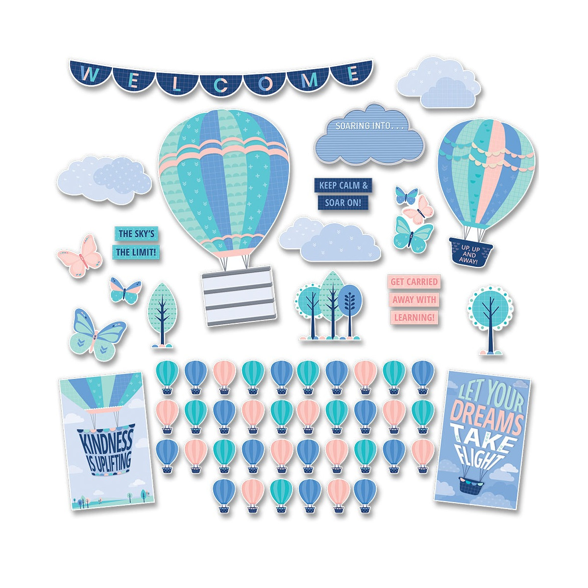 Lift off to a great school year with this Soaring High Bulletin Board! The serene colors and modern design make it perfect for featuring outstanding work, adding style to your back-to-school display, or inspiring students in learning. Use it in the hallway, on a classroom door, or on a bulletin board. This set is great for welcoming students to a new school year! It is also great for use at summer camps or vacation Bible school.