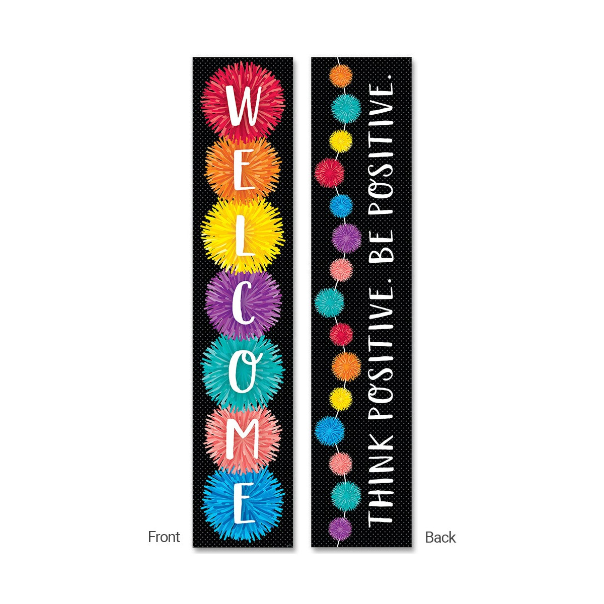 Use this Pom-Poms Welcome Banner anywhere you need a bright message or bit of inspiration! This versatile 2-sided banner features a different message on each side—Side 1: "Welcome" and Side 2: "Think Positive. Be Positive." It can be used during back-to-school to welcome students and parents then flipped over for a motivational message for the rest of the school year.