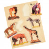 Wild Animals photo nobbed puzzle with realistic photographs Large knobs for little hands to easily grip. Size 11¾ inch W. x 9⅝ inch L. x ¼ inch thick. Ages 2 yrs. +.