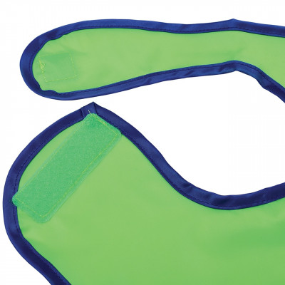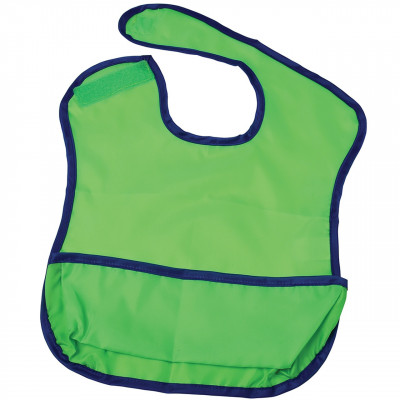 Made of stain resistant, 100% lightweight nylon fabric. These six waterproof bibs feature a gusseted crumb catcher pouch to snare crumbs and spills. Hook and loop closures allowMade of stain resistant, 100% lightweight nylon fabric. These six waterproof bibs feature a gusseted crumb catcher pouch to snare crumbs and spills. Hook and loop closures allow for easy fit. Size 12¾ inch L. x 9½ inch W.