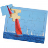 This 9 piece wooden inlay puzzle represents sail boat mode of transportation with a real photograph.