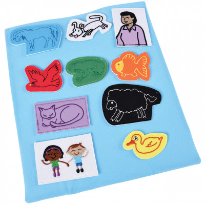 This set for retelling the story includes an 10 inch H. bear puppet, and 10 padded fabric props that adhere to the blue backboard. All store in a PVC bag. Ages 2 yrs. +