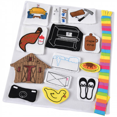 This set for retelling a fun story includes 13 padded props and a 10 inch H. pig puppet. All store on a white backboard in a PVC bag. Ages 2 yrs. +.
