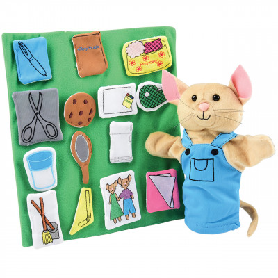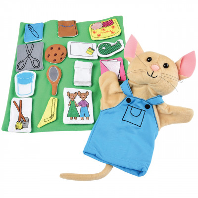 This set includes an 11 inch H. mouse puppet and 14 padded props to retell the story. All store on a green backboard in a PVC bag. Ages 2 yrs. +.