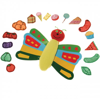 The 16 padded food props and 11½ inch L. butterfly, that changes from a caterpillar, help tell this classic story. Butterfly (not a puppet) has a 15 inch W. wingspan. Ages 2 yrs. +