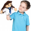 Role playing takes on a realistic dimension with this open-mouth 9 inch hand puppet that depicts a multi-ethnic woman in the non-sexist career role of doctor. Has a soft stuffed head with embroidered facial features, yarn hair, and permanently attached clothing.