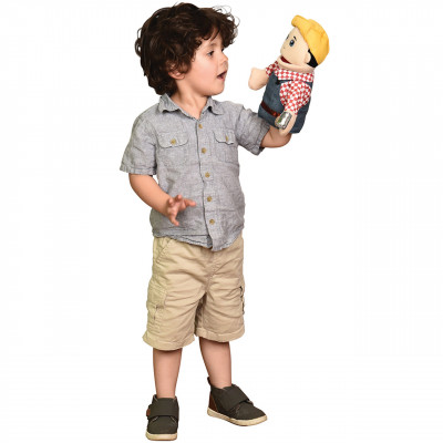 Role playing takes on a realistic dimension with this open-mouth 9 inch hand puppet that depicts a multi-ethnic man in the non-sexist career role of construction worker. Has a soft stuffed head with embroidered facial features, yarn hair, and permanently attached clothing.