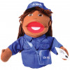 Role playing takes on a realistic dimension with this open-mouth 9 inch hand puppet that depicts multi-ethnic woman in non-sexist career role of mail carrier. Has a soft stuffed head with embroidered facial features, yarn hair, and permanently attached clothing.