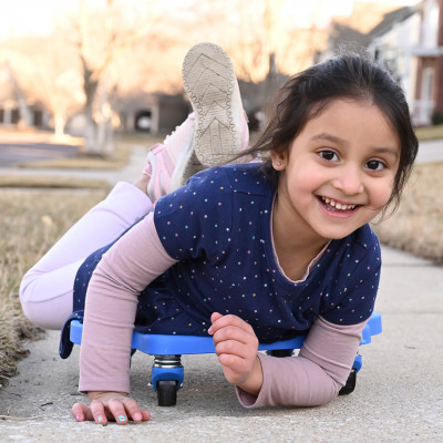 This safety scooter board has handles for children to grip as they roll and scoot a safe 3½” H. off the ground. Heavy duty poly with non-marring double ball bearing swivel casters. 12″ square. Ages 3 yrs. +.
