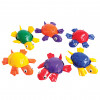6 colorful turtles have soft, wipe clean vinyl bodies, securely stuffed with polystyrene beads. 6¼” L. x 5″ W. All ages.