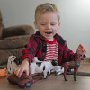Realistic vinyl reproductions of farm animals with authentic coloring. Set includes 1 Sheep, 1 Pig, 2 Horses, and 3 Cows. Horse stands 6 inch H. Ages 2 yrs. +.