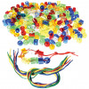By stringing these 250 large transparent beads on a light box surface, they will see the effect of light shining through the rich colors. Includes 8 tipped cord laces (25 inch L.). Beads range from 5/8 inch sq. Ages 3 yrs. +.