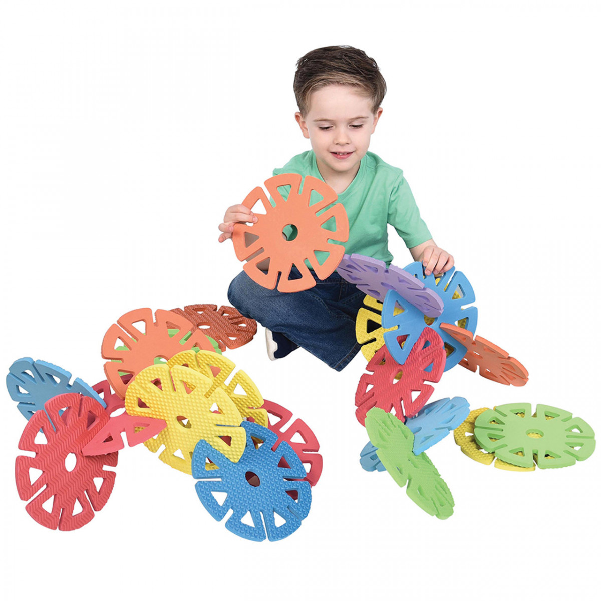 Large, foam, mulit-notched discs allow building in any direction. Size 8 inch diam. Ages 3 yrs. +.