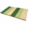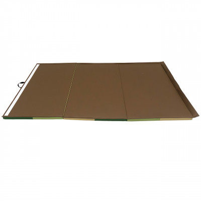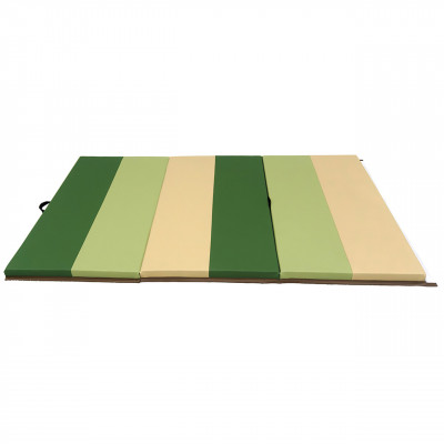 The 1.5" thick polyethylene foam is covered with heavy-duty, vinyl coated nylon and a 2" end strip with hook and loop fasteners, lets additional mats be connected. Folds for storage. Flame retardant foam and vinyl. Measures 4' x 6'.