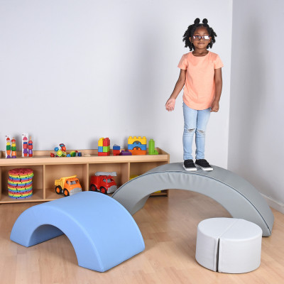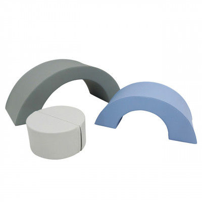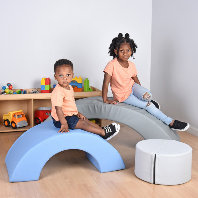 This natural colored arch set is constructed of dense foam covered in durable, wipe-clean vinyl. This multi use piece can be used as a climber, rocker and seat. Largest arch measures 49" W. x 16" D. x 18" H. Middle arch measures 32.5" W. x 16" D. x 13" H. Small arch can be folded to create a seat and measures 15" W. x 16" D. x 8" H.