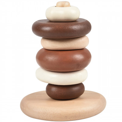Learn the fundamental concept of counting and sequencing through this organic shaped stacking toy. The wooden pebbles come in gradual sizes from big to small, encouraging children to identify sizes and put them back into order. Ages 12 mos. +.
