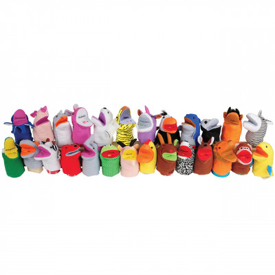 Represent all the letters of the alphabet with these soft stuffed fabric puppets with moveable mouths. Size 6 inch T. All ages.