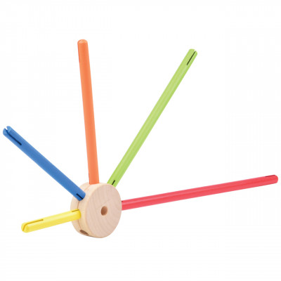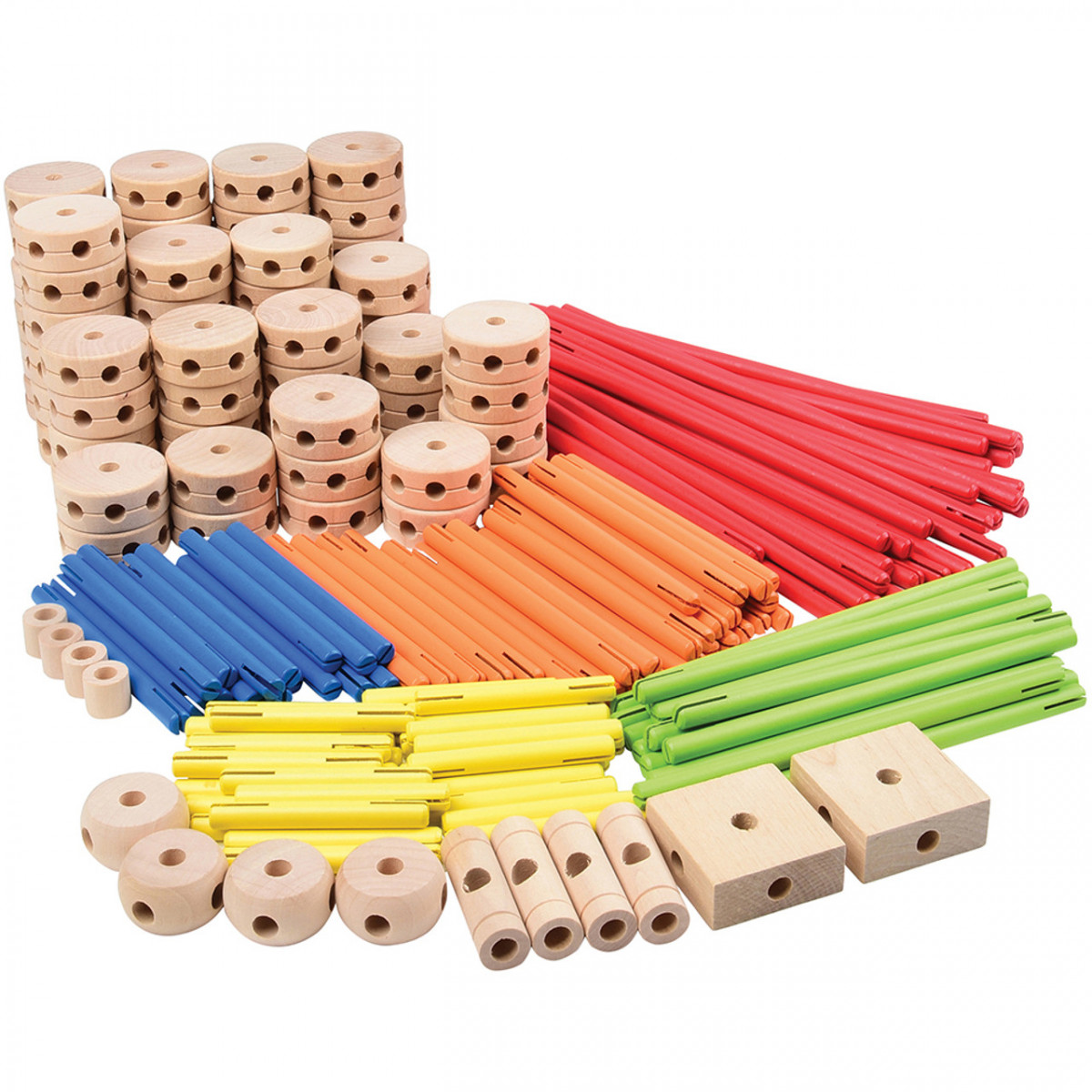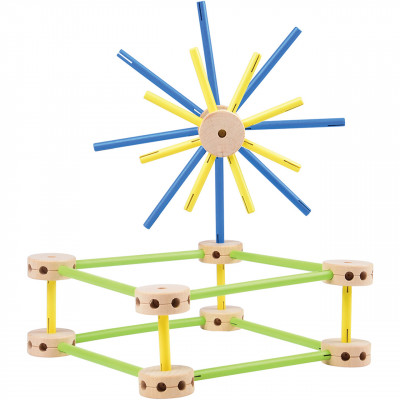 This rod and connector system is made of smoothly sanded hardwood. Largest rod is 10½ inch L. Ages 3 yrs. +.