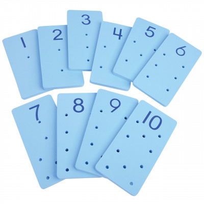 A set of 10 durable foam boards, 4 inch x 8 inch, numbered from one to ten with corresponding holes in each board. Brightly colored easy grip pegs are included to match with holes. Ages 3 yrs. +.