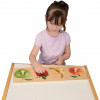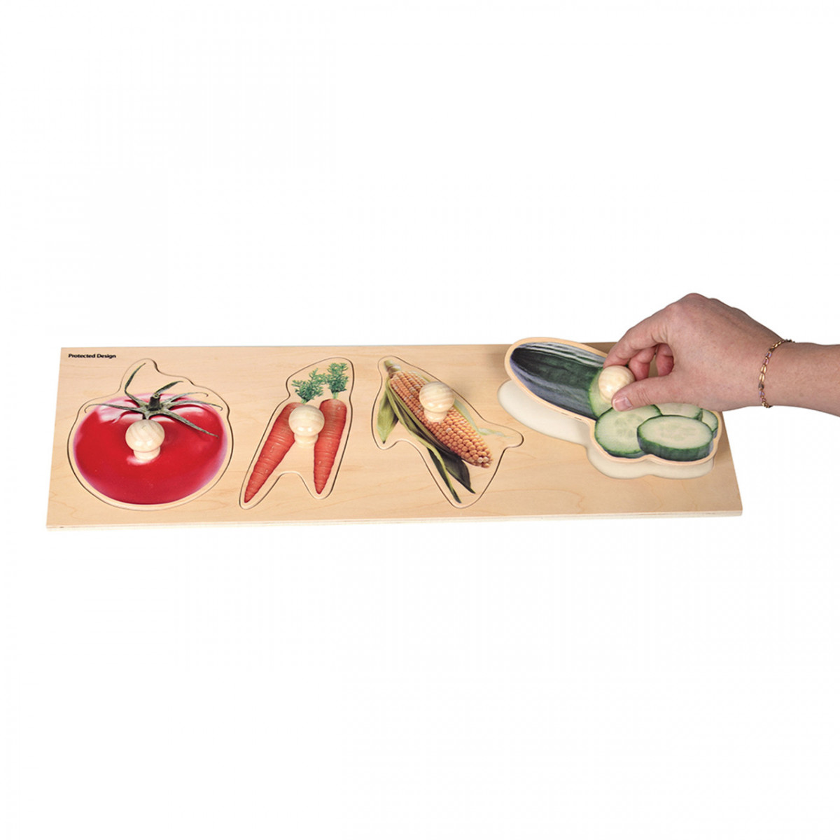 Real photograph puzzles with 4 large, raised pieces, each having a big, 1 inch knob for easy handling. Each puzzle measures 19 3/4 inch W. x 6 1/4 inch L. x 1/4 inch thick. Ages 1 yr. +.