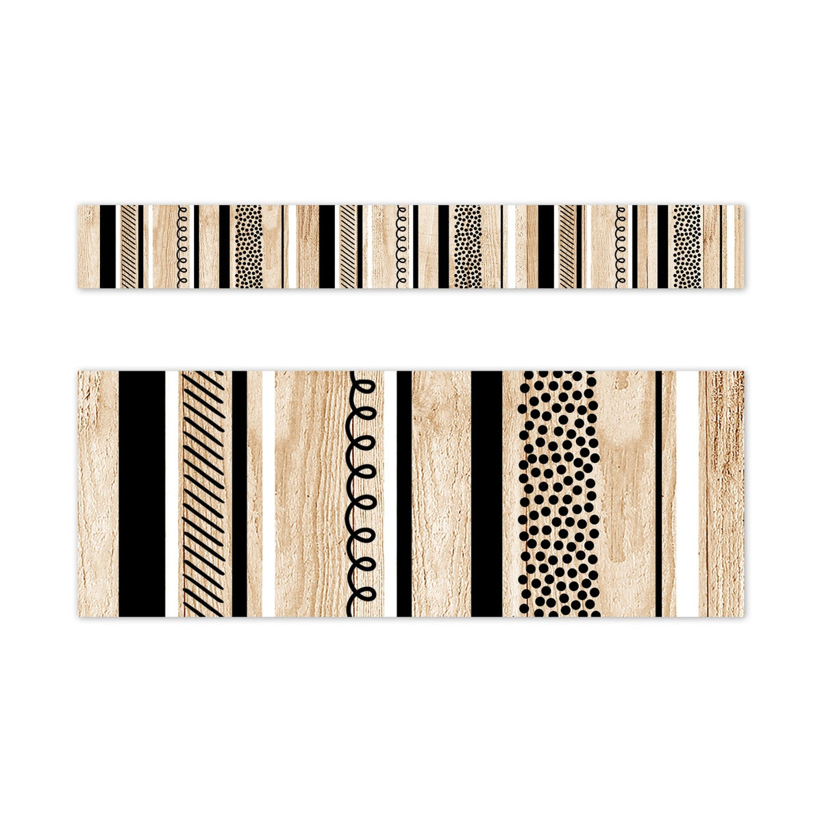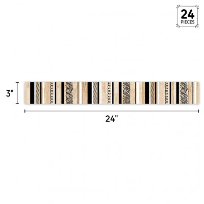 Fun designs on a wood-patterned backdrop make this Stripes and Doodles on Wood EZ Border a creative way to trim any bulletin board. Use it by itself or layer it with another border for a unique look. This EZ border comes in smaller strips, which are easier to manage and store. Each package comes with enough border to complete 2 full bulletin boards.