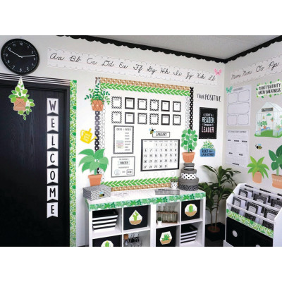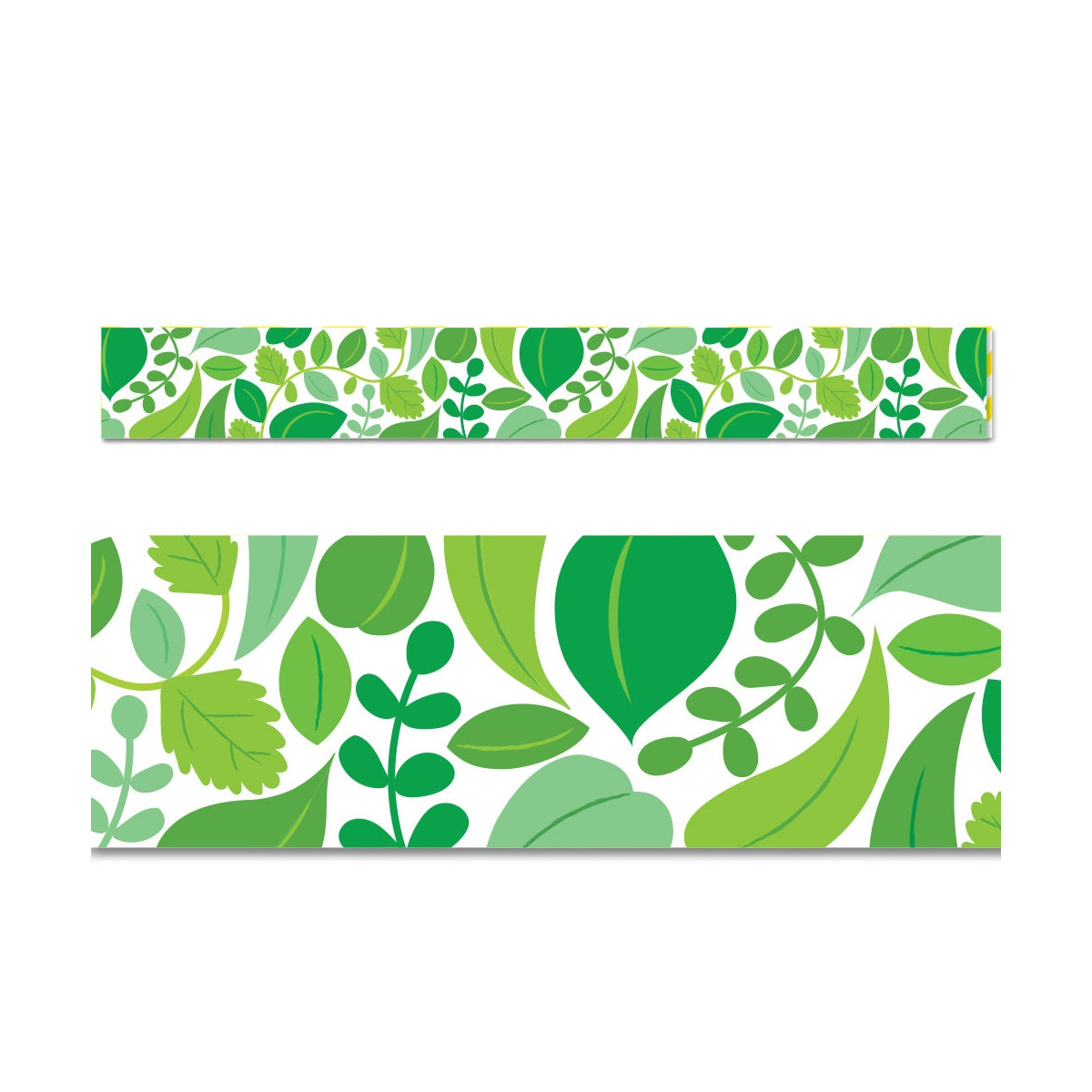 Simple and classic, the leaves on this Leaf Foliage Border will trim any bulletin board or nature-themed display in style. Perfect for a variety of bulletin boards and classroom decoration themes, including those related to gardening, plants, nature, jungle, and more! Use this border to trim an inspirational "Unbe-leaf-able Work" or "Be-leaf in yourself" bulletin board. These new EZ borders come in smaller strips, which are easier to manage and store. Each package comes with enough borders to complete 2 full bulletin boards.