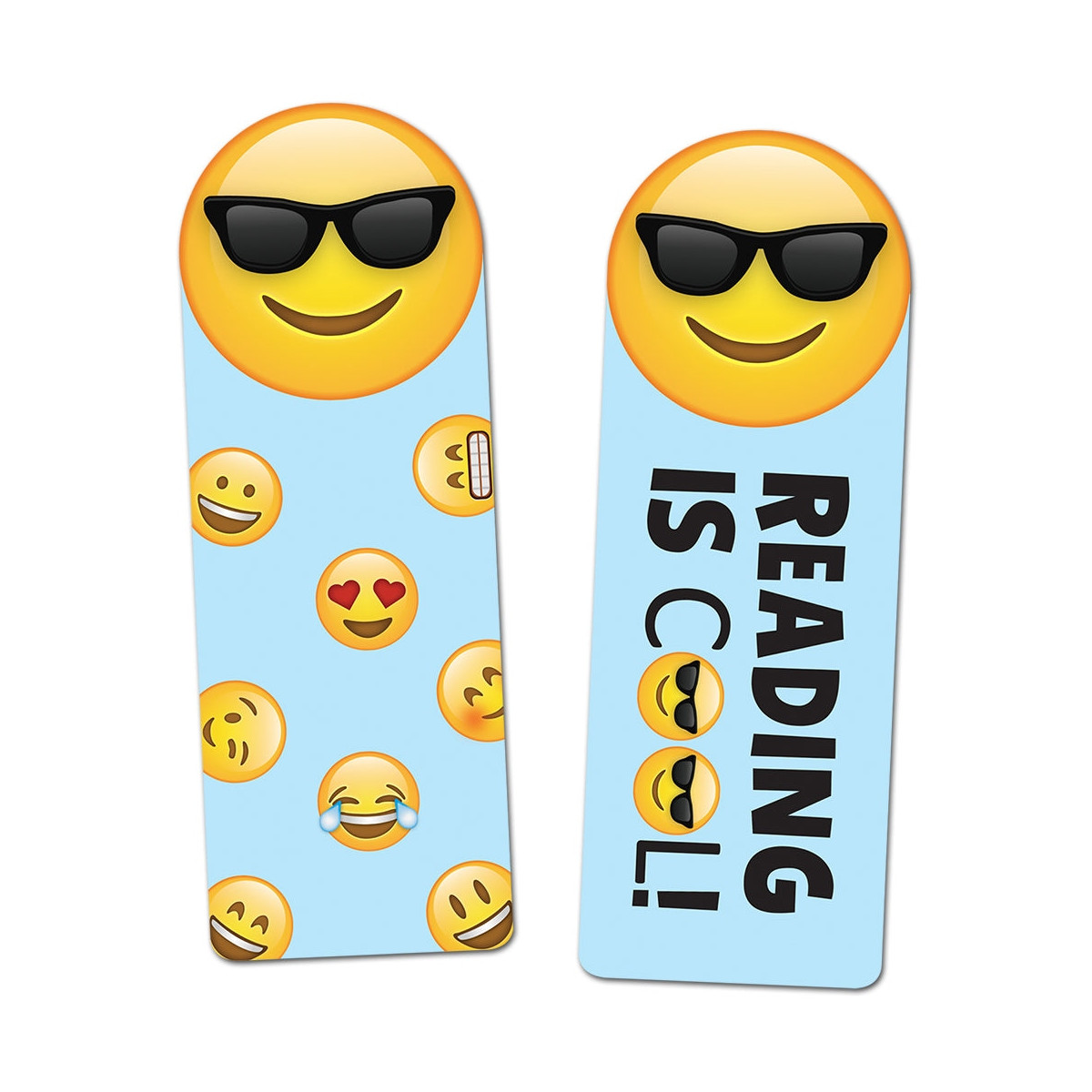 Bookmark 1: A generic design featuring a large sunglasses emoji face along with a variety of other sweet and smiley emoji faces. Perfect for any type of reward or classroom use.