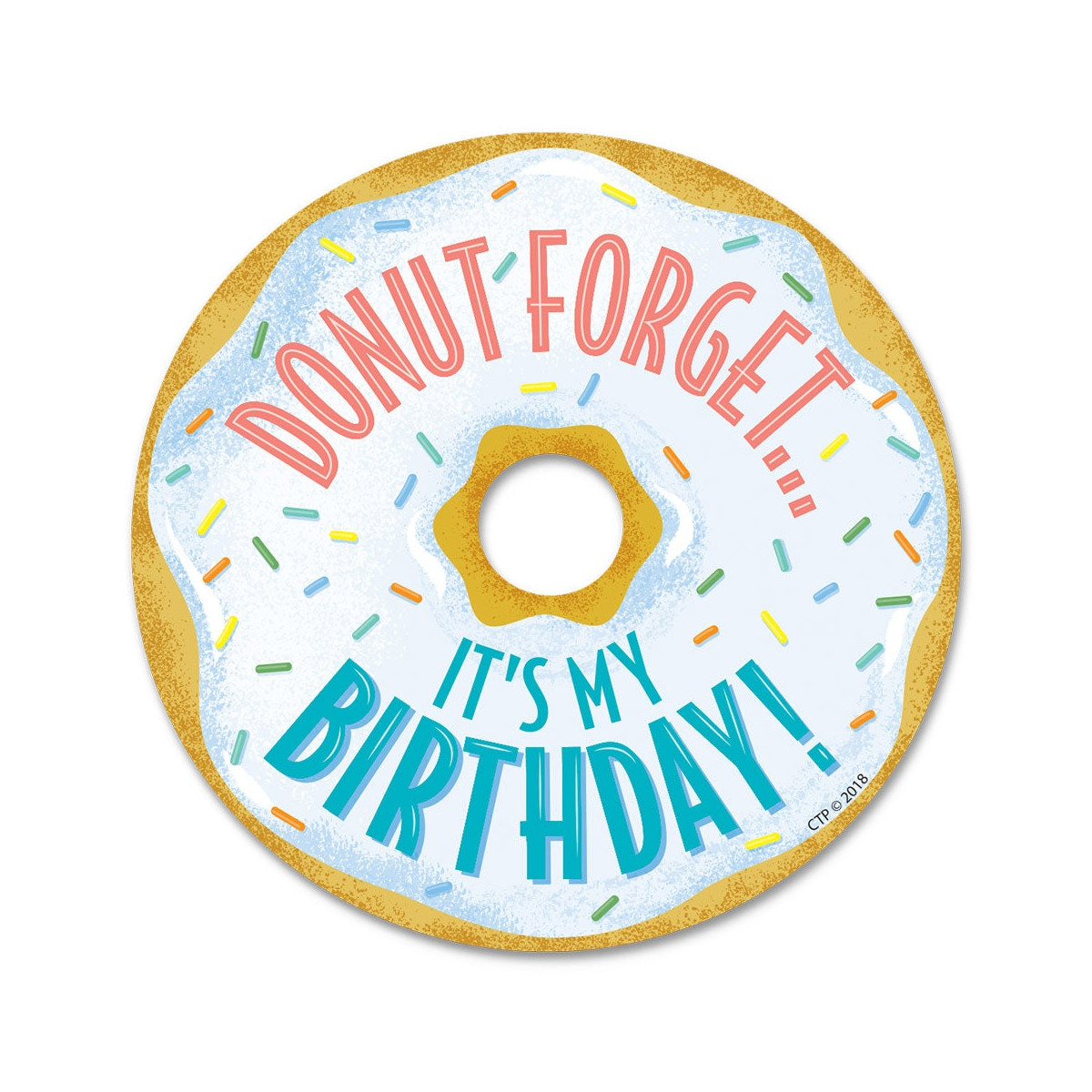 Students will love wearing this Mid-Century Mod Donut Forget It's My Birthday Badge sticker. This retro-inspired design features a yummy-looking donut with multicolored sprinkles. Students will proudly wear this colorful badge sticker all day long to celebrate this milestone. Parents will enjoy seeing their child come home with the badge and be excited to hear about their child's special day at school.