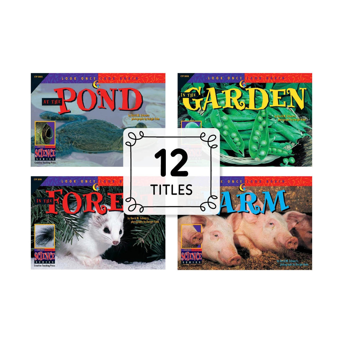 At the Seashore (3001), Underfoot (3002), At the Pond (3003), In the Desert (3004), In the Meadow (3005), In the Park (3006), Among the Flowers (3007), In the Garden (3008), At the Zoo (3009), In the Forest (3010), In a Tree (3011), and At the Farm (3012).