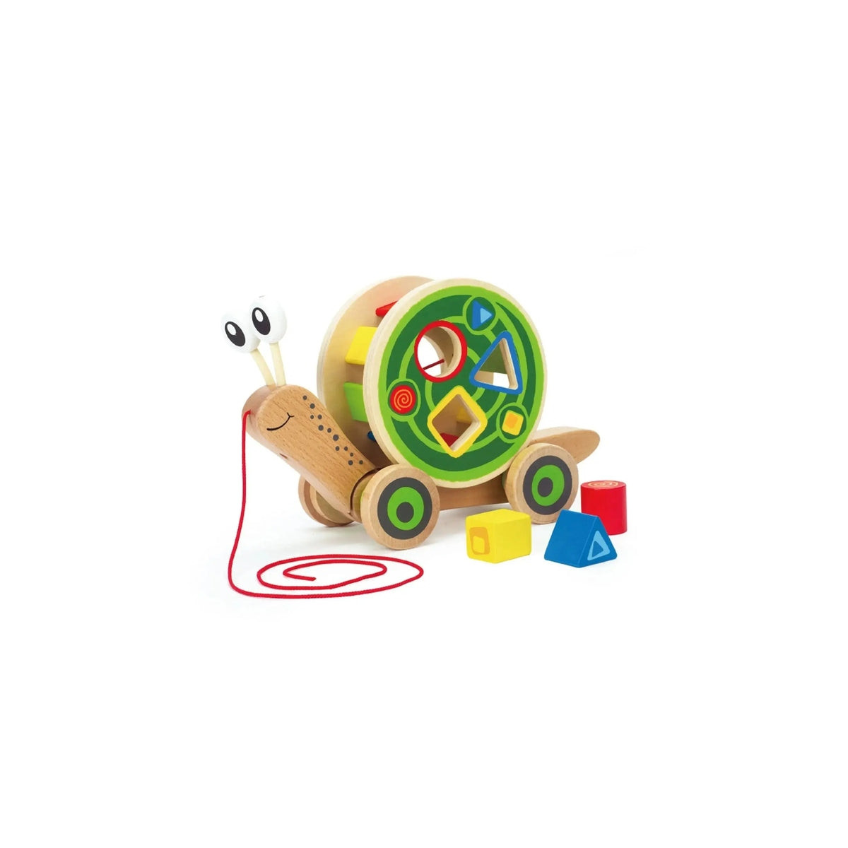 Hape's Walk-A-Long Snail Toddler Wooden Pull Toy is the perfect companion for little ones just beginning to learn about sorting colors and shapes.
