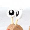 The push-pull toy has three different shaped holes (triangle, circle, and square). The opposite side features an elastic-banded opening for easy yet secure access to the inside the snail’s shell.