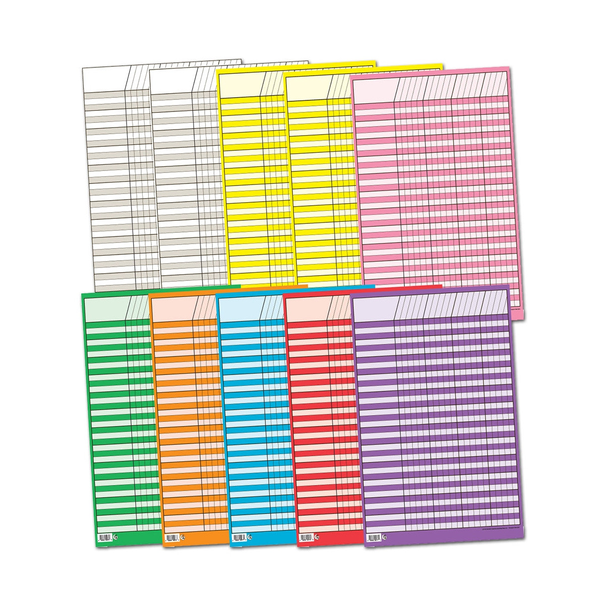The brightly colored incentive charts in this Small Incentive Charts 10-Pack are versatile for all ages and many types of uses at home and school. Includes spaces for 33 student names and 25 assignments. Pack includes 2 white, 2 yellow, and 1 each of pink, green, orange, blue, red, and purple. Charts measure 14¼" x 22".