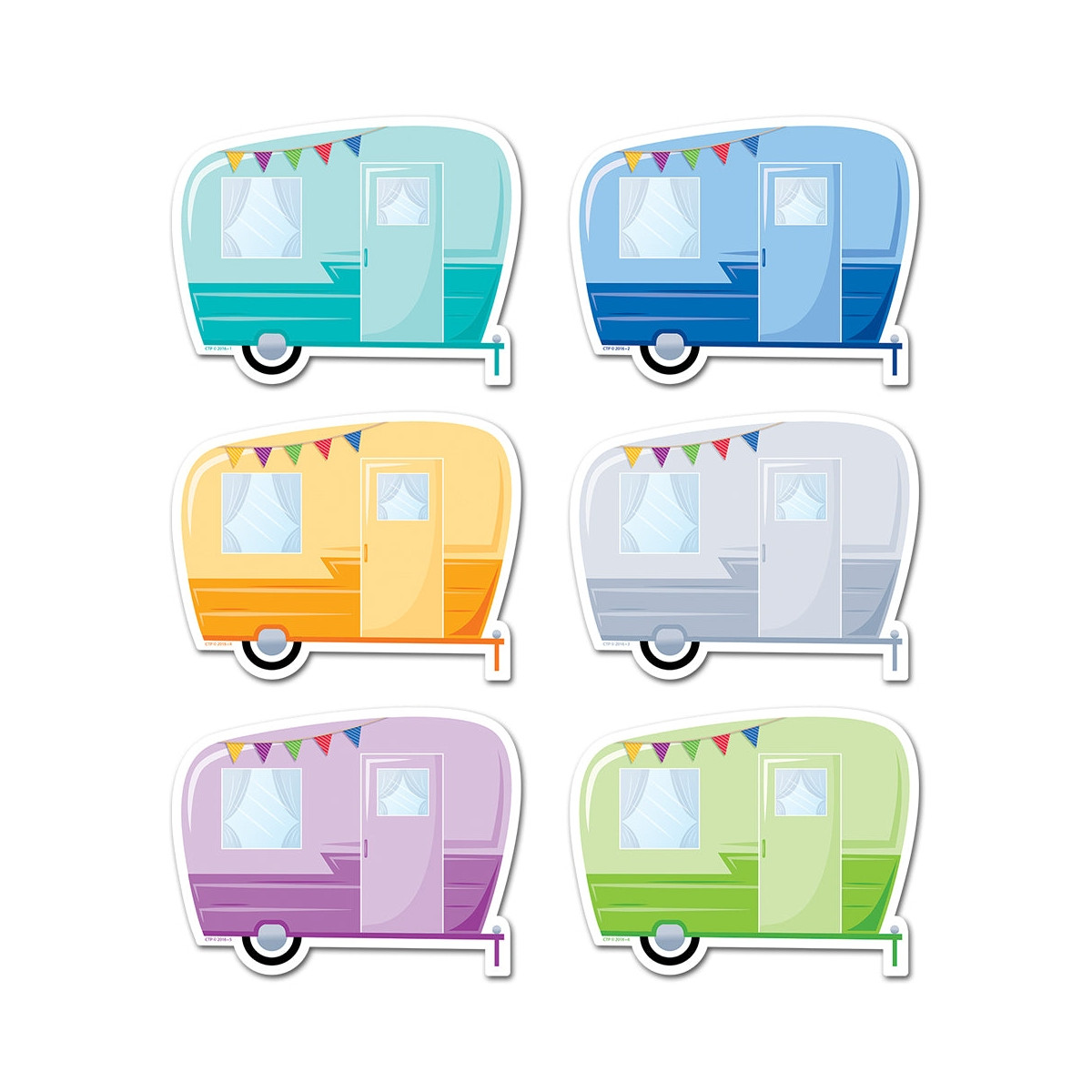 The classic look of these Vintage Trailers 6" designer cut-outs will surely bring the spirit of outdoor adventure to your classroom. These fun camping trailers are perfect for a classroom camping theme and for use in a variety of outdoors-related displays (nature, exploration, nature, etc.). They could even be used for your literature and poetry bulletin boards. Consider this quote from Robert Frost's poem, "The Road Not Taken":