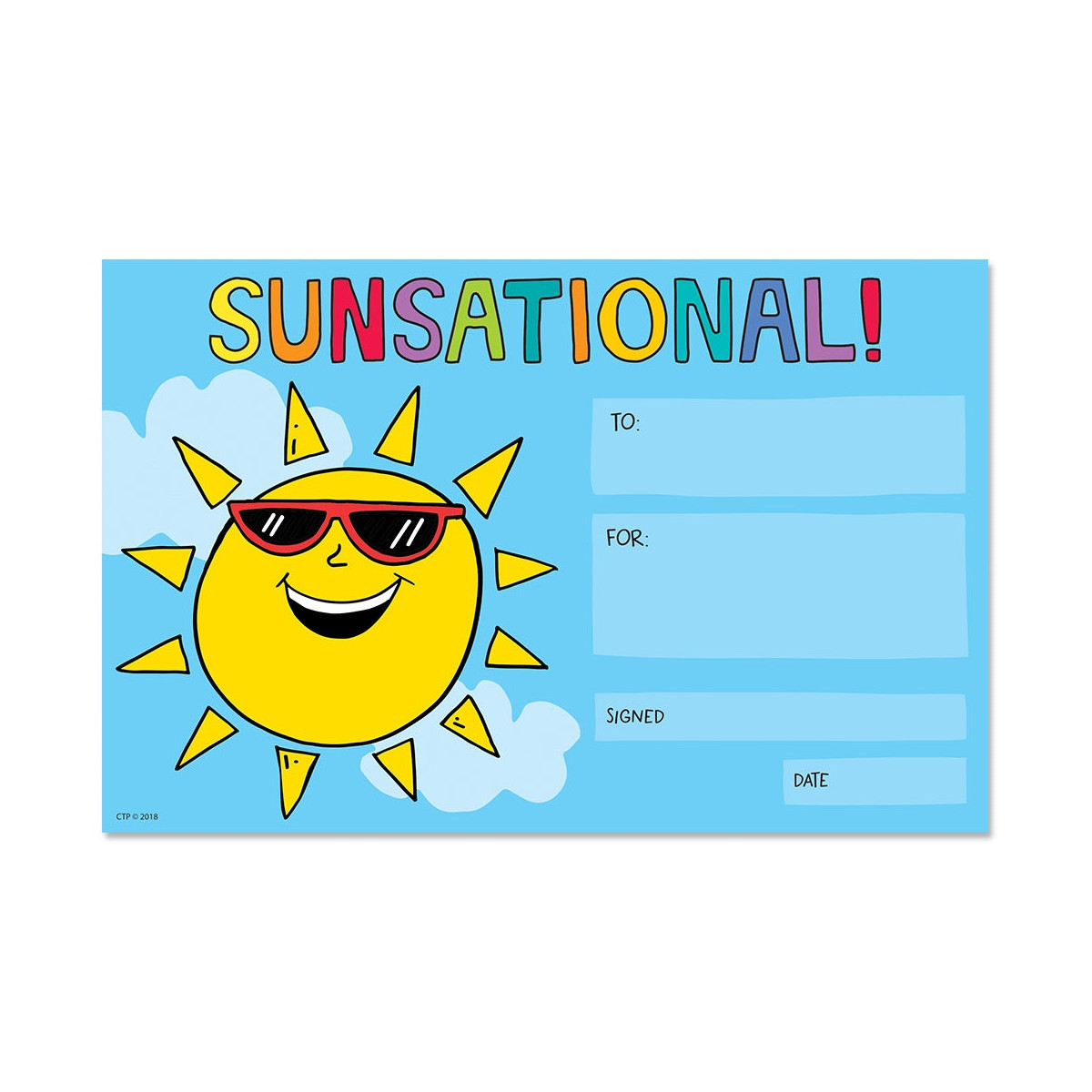 This So Much Pun! Sunsational! Award features a cheerful sun and an inspiring message that students will love. This colorful student award is the perfect certificate for children in a wide range of age or grade levels. Use this reward certificate for recognizing outstanding behavior, super effort, or positive attitude. Awards are easy to customize for each student and special occasion.