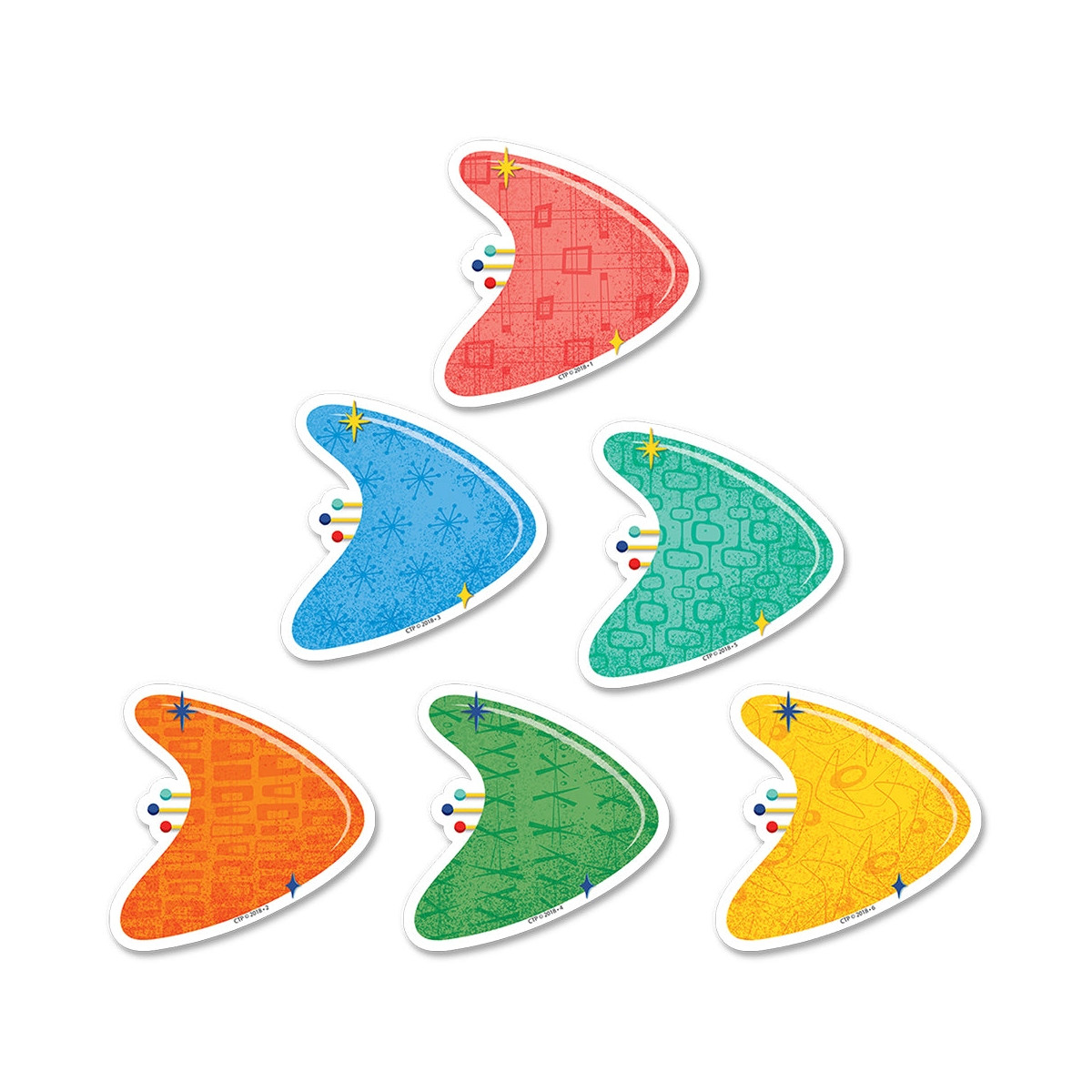 These retro-inspired Mid-Century Mod Boomerangs 3" Cut-Outs feature the classic patterns and colors of popular mid-century design! These geometric boomerang shaped cut-outs are perfect for accenting a variety of classroom displays, bulletin boards, and projects. Also, add any content (e.g., math facts, vocabulary words, or science photos) to the cut-outs to make flash cards, learning cards, or other classroom activity cards.
