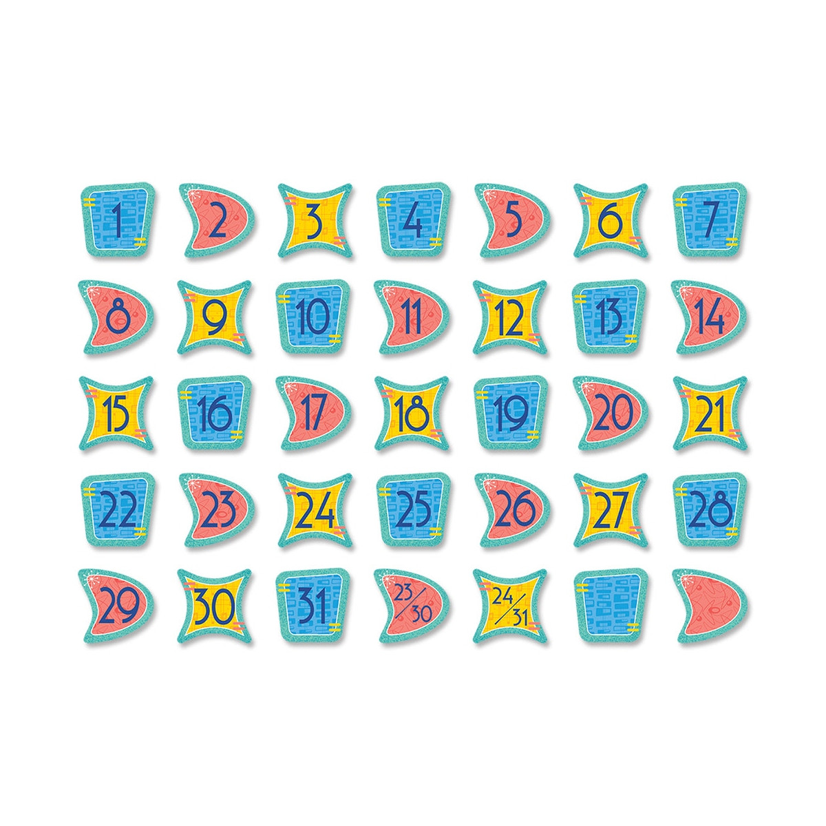 These retro-inspired Mid-Century Mod Calendar Days are a throwback to the popular shapes and colors from mid-century design. Pack contains 31 number days (designs form an ABC pattern), 2 combined number days (23/30 and 24/31) and 2 blank days for highlighting special events or holidays and recognizing birthdays. Calendar Days are great for use on a classroom calendar during the daily calendar lesson or circle time. They can also be used as student numbers to label cubbies, folders, desks, and more!