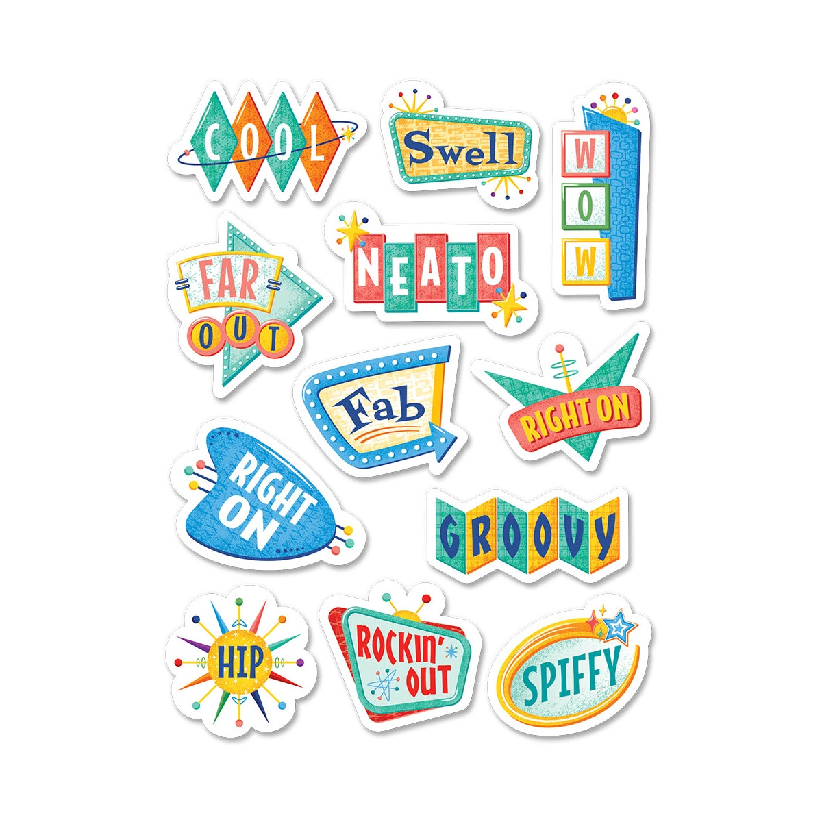 These retro-inspired Mid-Century Mod Retro Rewards Stickers feature inspirational phrases that will bring back a bit of '50s nostalgia. Tell students their work and effort was "Far Out," "Spiffy," "Neato," and "Swell" with these positive reward stickers.