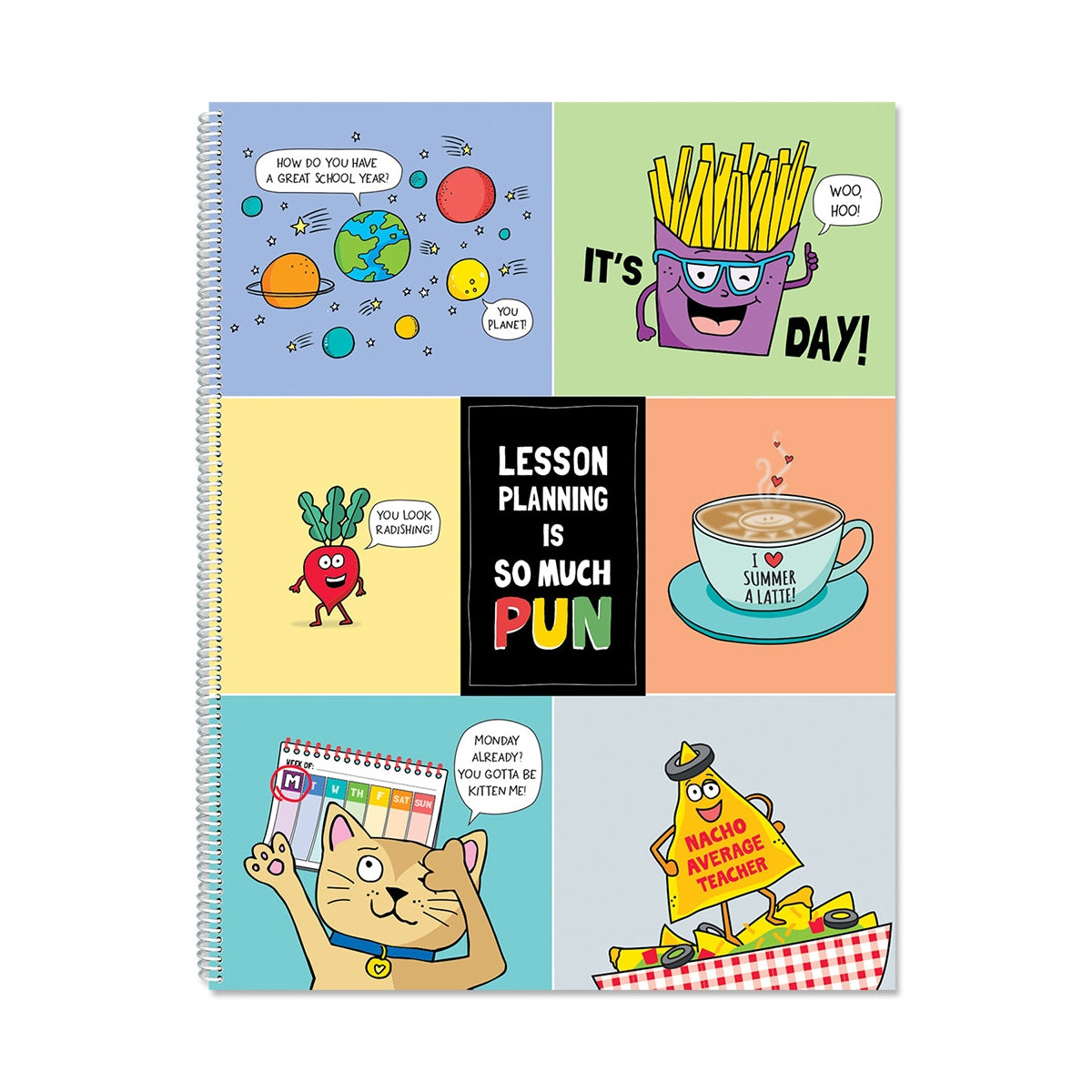 Taco 'bout an awesome lesson plan book! This So Much Pun! Year-Long Lesson Plan Book features funny teacher puns and school memes to bring a bit of humor to lesson planning. Inside you will find a month-at-a-view planning calendar before every 4 weeks of lesson planning pages. Also, the lesson planning pages include a 2-page spread for 48 weeks of teaching. 8 ½" x 11", spiral-bound. 136 pages.