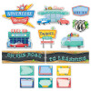 This Mid-Century Mod On the Road to Learning Mini Bulletin Board is a terrific way to decorate for learning adventures. The retro-inspired design of this set brings back a bit of nostalgia with classic cars, a diner, a road trip along Route 66, and the iconic boomerang shape. Use the vintage-looking postcards included in this set to have students write about a favorite memory from summer break. This is a great activity for the first week of school. Or create a time capsule and have students write a postcard to themselves that they will read at the end of their learning adventure (school year). This set can also be used for summer camp, church camp, or other learning programs.
