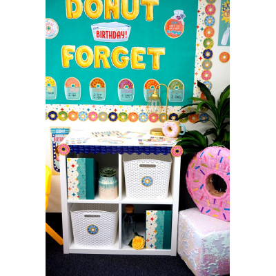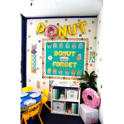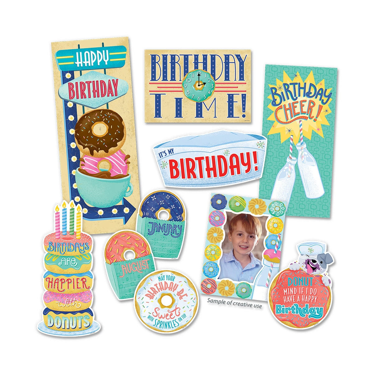 Who can resist these yummy-looking birthday donuts! This Mid-Century Mod Happy Birthday Mini Bulletin Board will add an accent of fun to your classroom birthday display. The sweet, retro-inspired color palette gives these donuts a playful look that is sure to delight students on their special day.