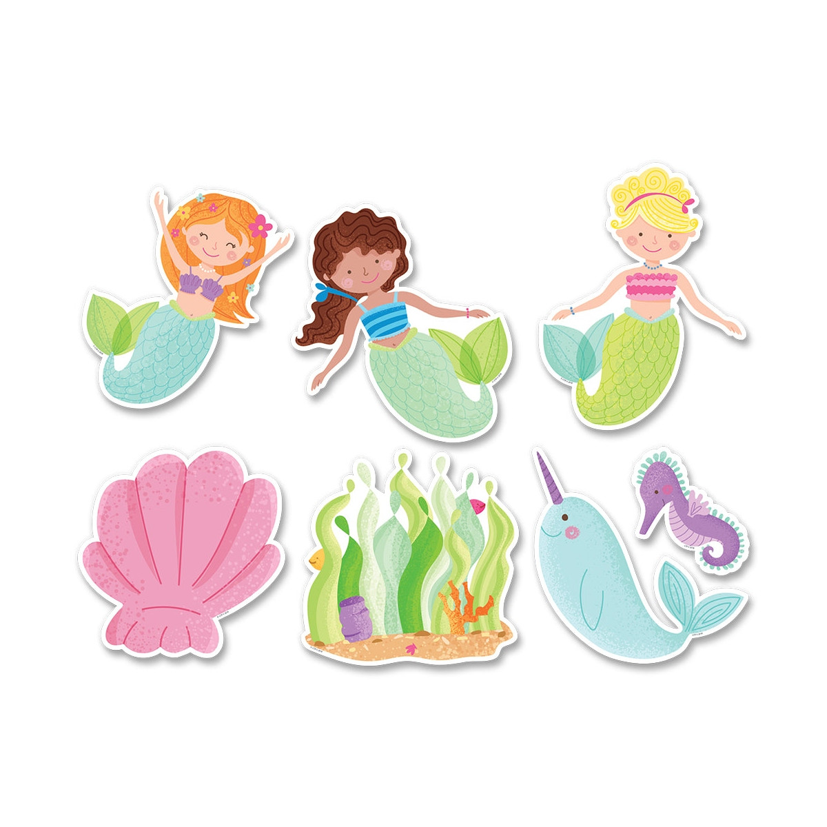 Go under the sea with these Mermaid Fun 6" Designer Cut-Outs. They can be used as labels for storage bins, desk tags, accents on bulletin boards, writing prompts, learning center activities, and more! Create a bulletin board or student project around these themes: "Dive into a Great Book," "Swimming into Summer (or insert any topic)," and "Happy to Sea You!" for a back-to-school themed bulletin board.
