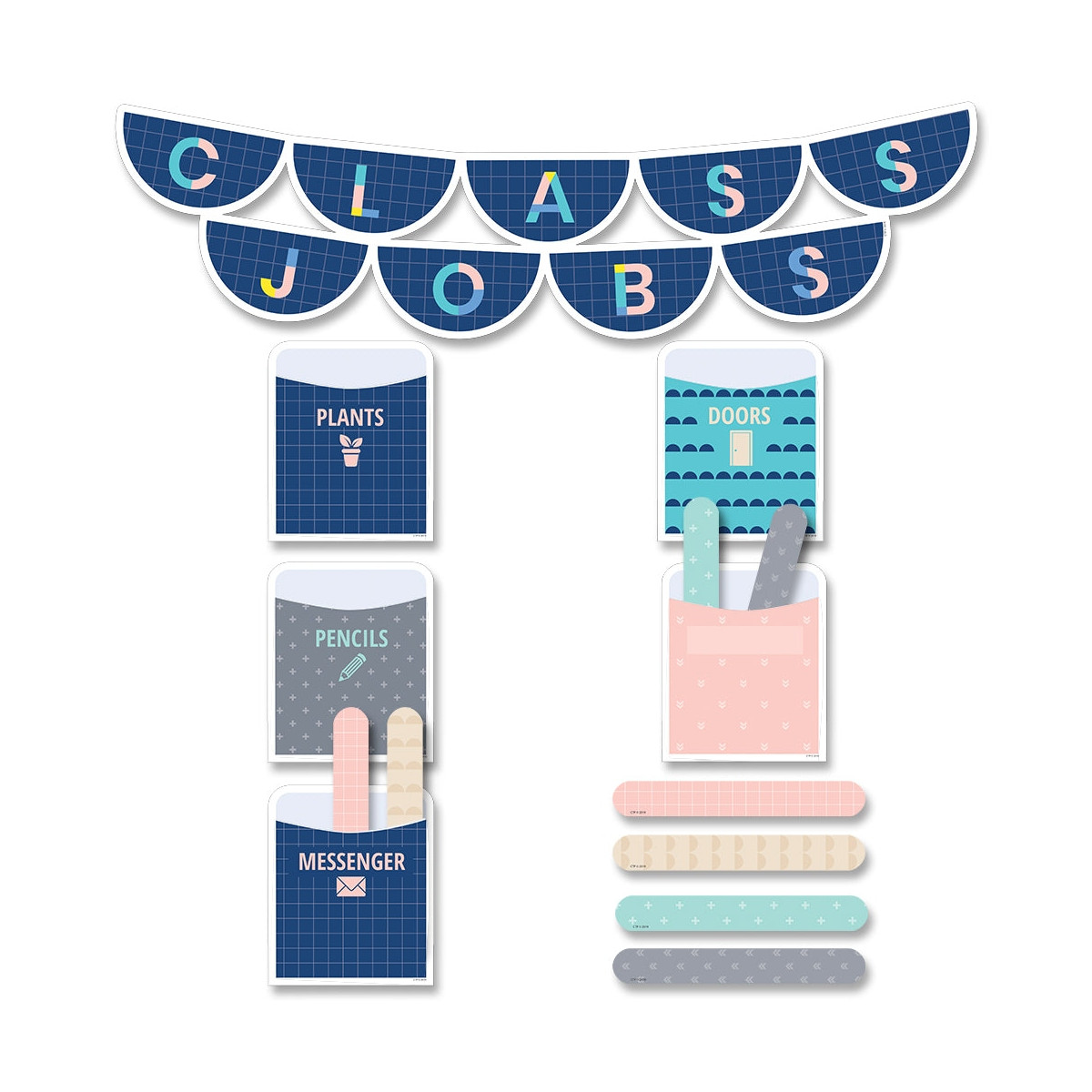 Serene colors and modern design combine to make a stylish and effective class jobs set - a classroom necessity! Use this Calm & Cool Class Jobs Mini Bulletin Board in your classroom management plan to post classroom jobs and assign students to each job.
