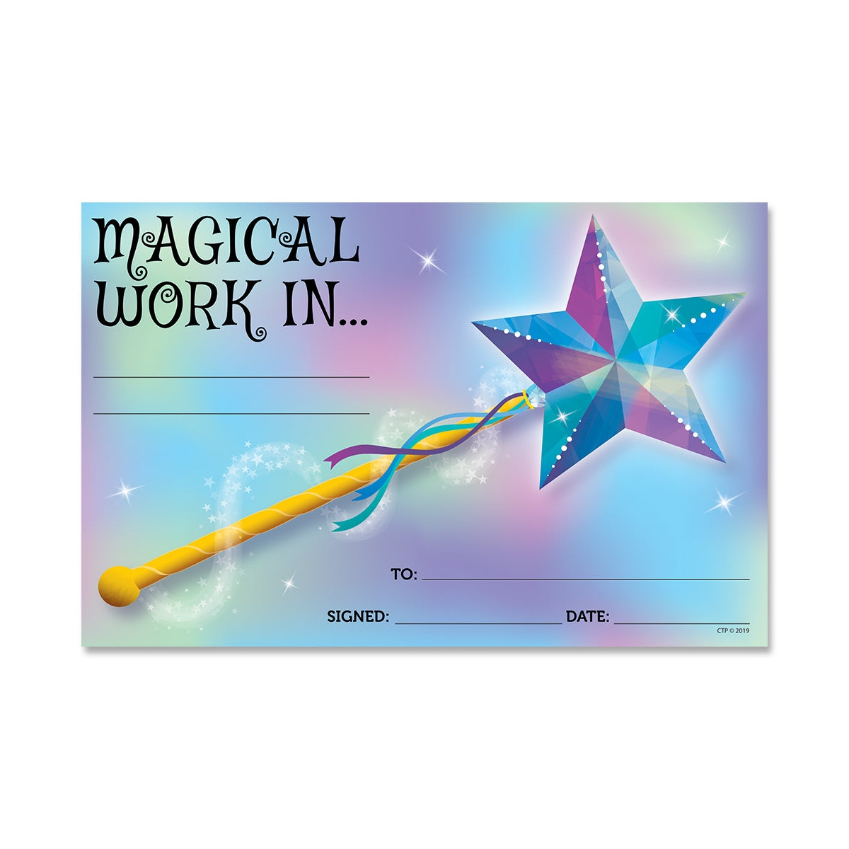 This Magical Work Award features an enchanting wand and an inspiring message that students will love. Use this student award certificate for recognizing outstanding behavior, super effort, or positive attitude. Or celebrate a student's achievements in a particular subject, on a state test, or in a reading program. Awards are easy to customize for each student and special occasion.