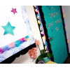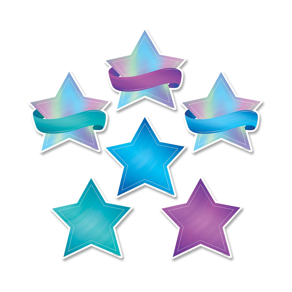 These versatile Mystical Magical Shimmering Stars 6" Designer Cut-Outs are perfect for accenting a variety of classroom displays, bulletin boards, and student projects. They can be used as labels for storage bins, desk tags, accents on bulletin boards, writing prompts, learning center activities, and more! Create a bulletin board or student project around these themes: "Reaching for the Stars," "Super Stars in Science" (or insert any topic), and "Our class really shines" for a back-to-school-themed bulletin board.